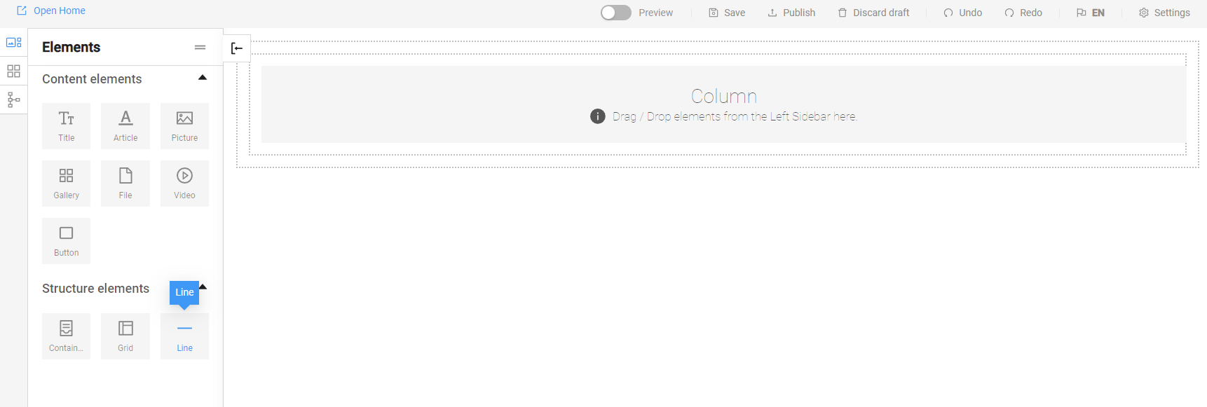 When we need to separate one part of the content on our site from another, the "Line" element comes to the rescue. It is represented by a horizontal line.